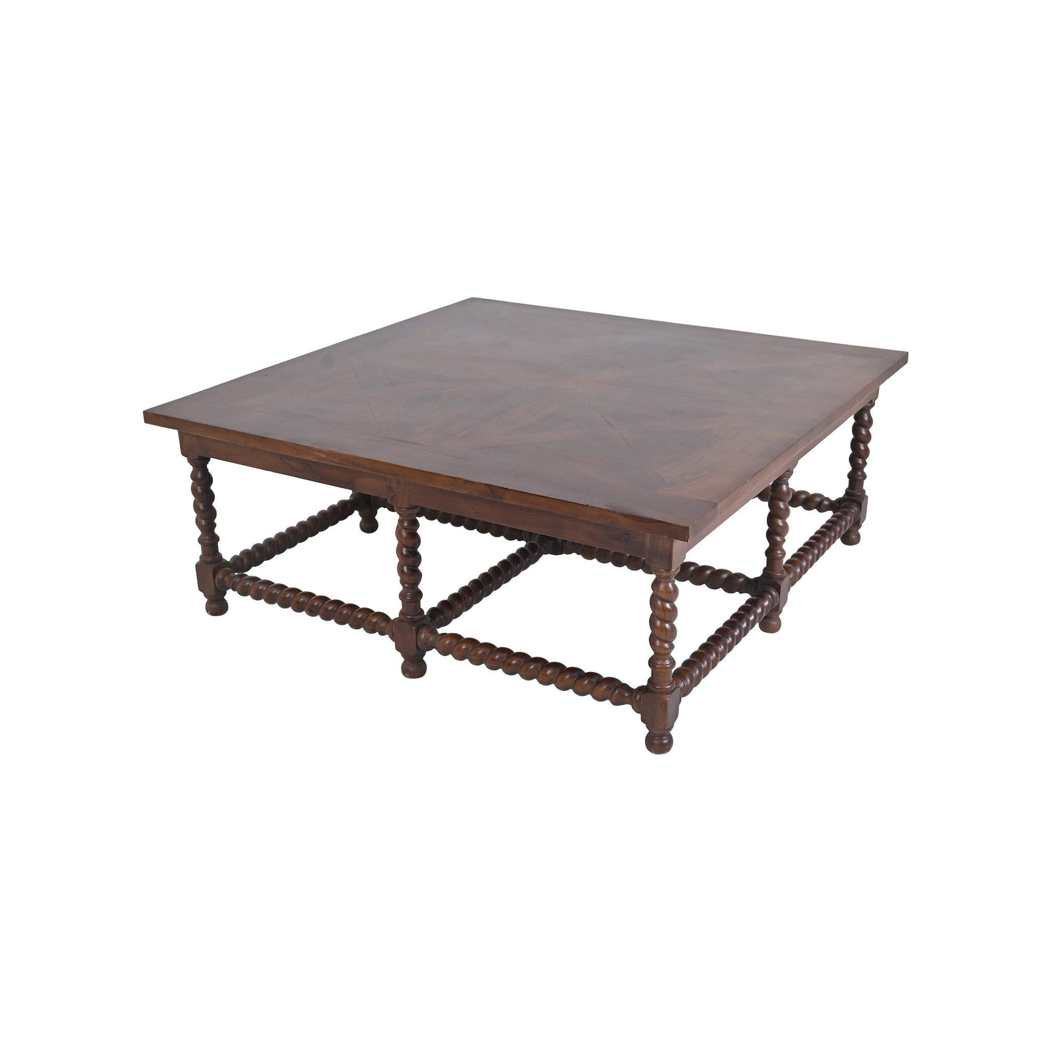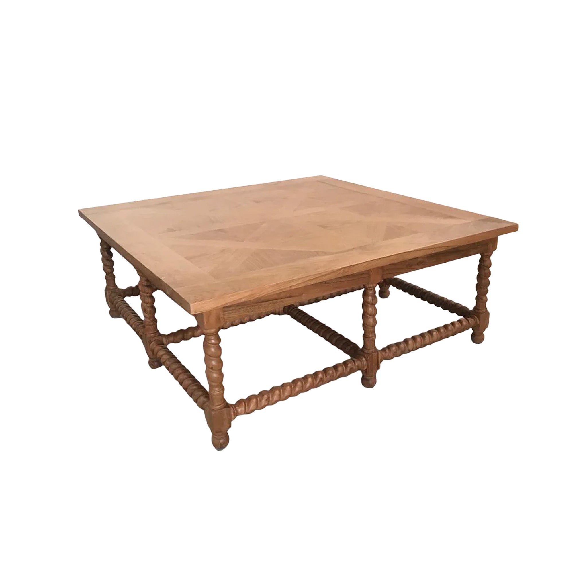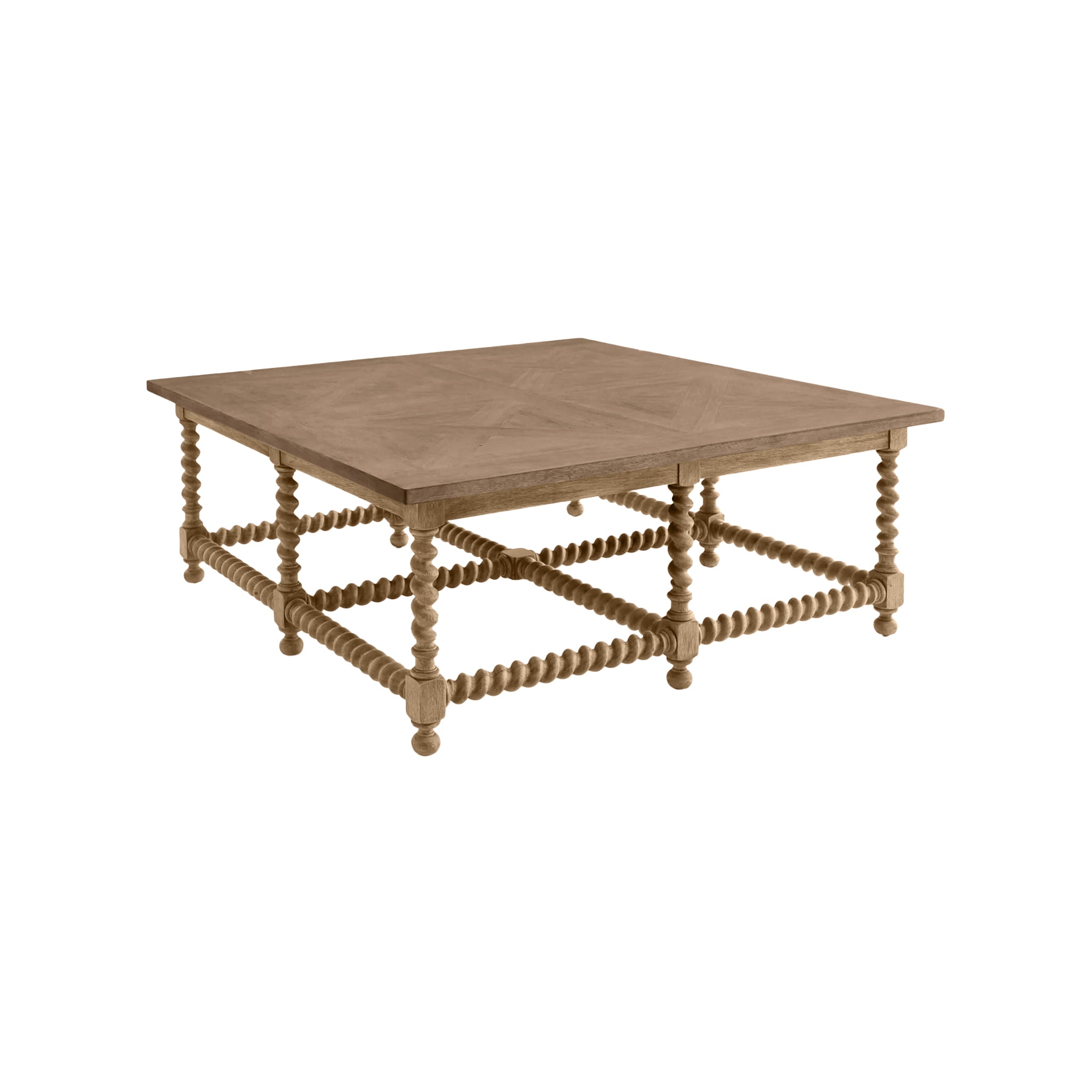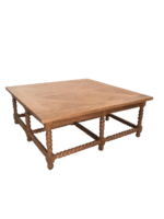 This coffee table takes inspiration from classic European design, offering a traditional yet contemporary look with its unique barley twist legs and parquet top.