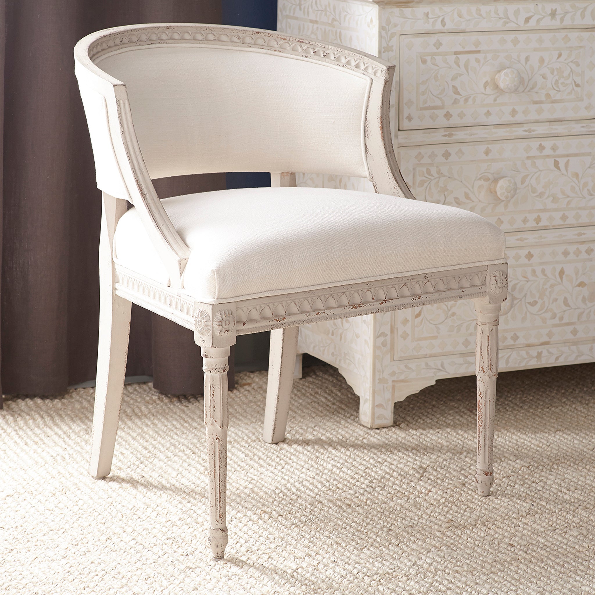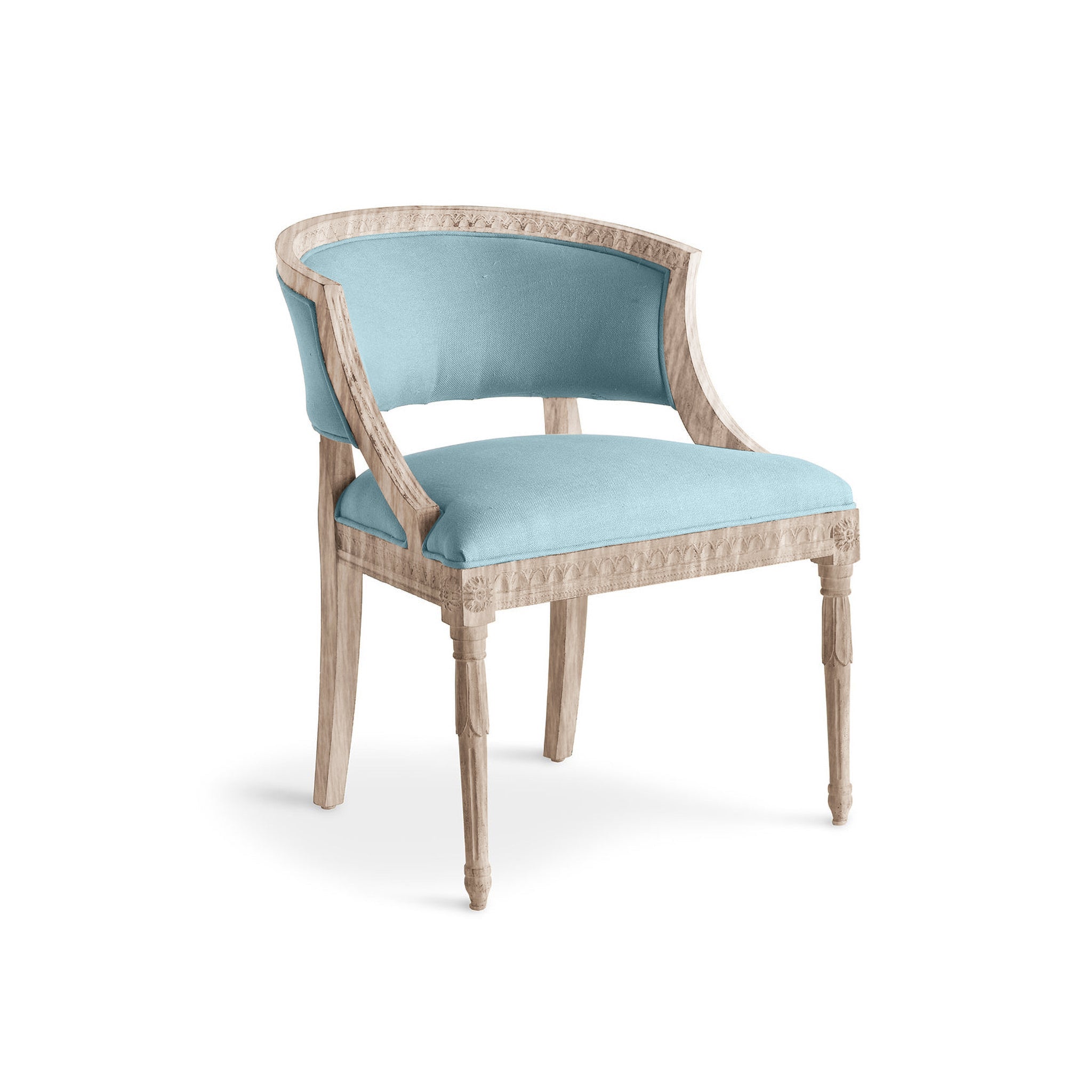With its elegant curved back and intricate detailing, the Gustavian Tub Chair offers both sophistication and comfort. Crafted from mango wood and 100% linen fabric, this chair brings a refined and timeless touch to any space. Available in multiple colors, it complements a variety of decor styles.