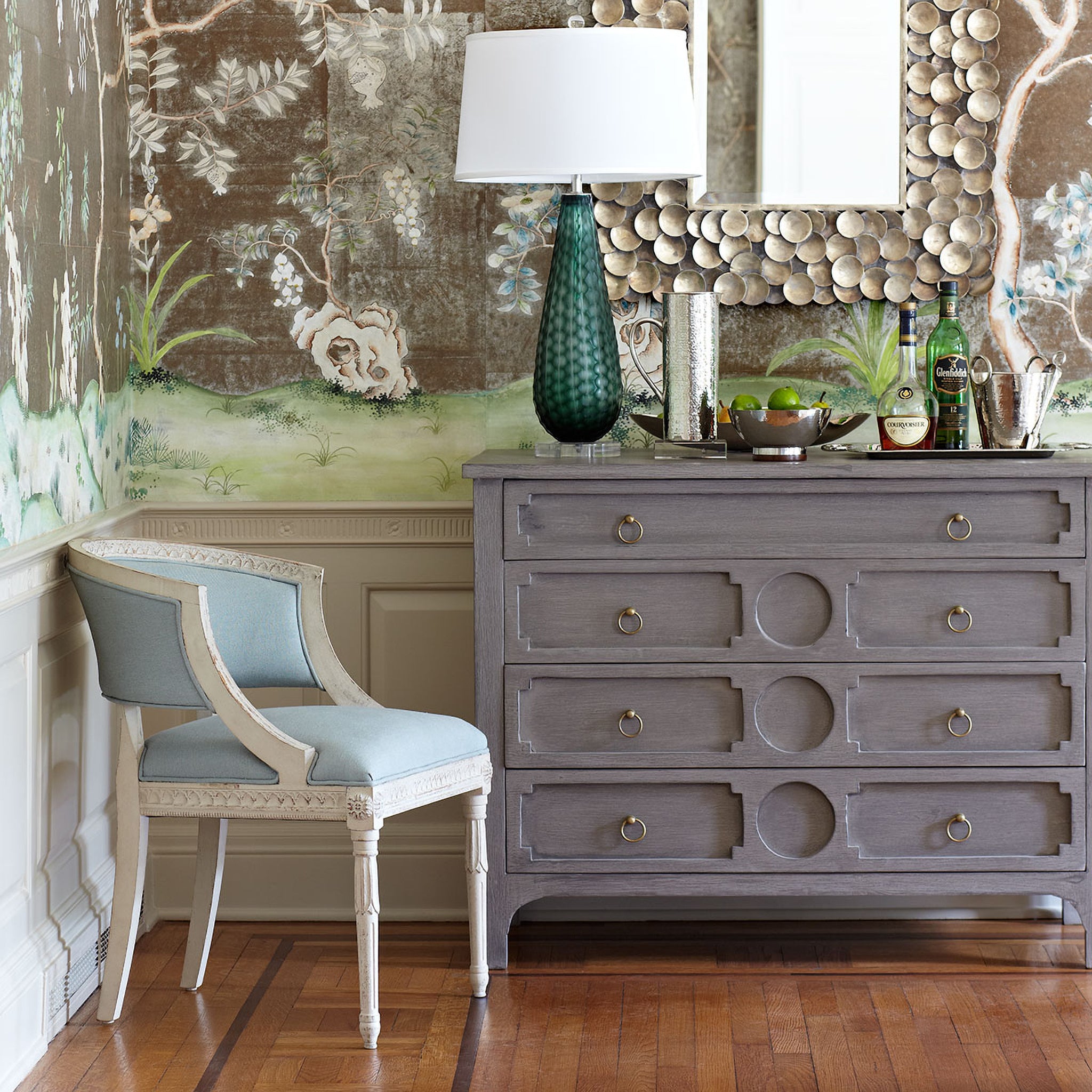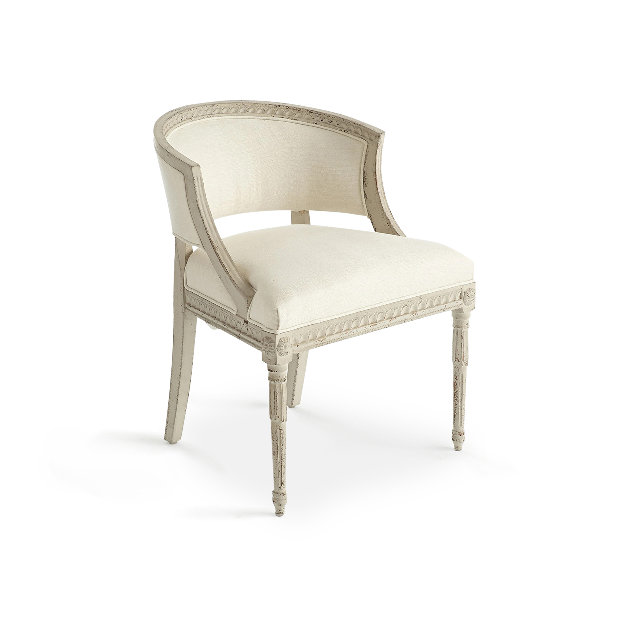 The Gustavian Tub Chair draws inspiration from the graceful simplicity of Scandinavian furniture design, blending function with artistic elegance.
